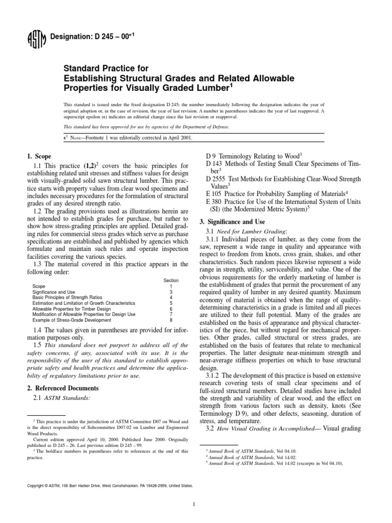 This standard is issued under the fixed designation D 245; the number immediately following the designation indicates the year of