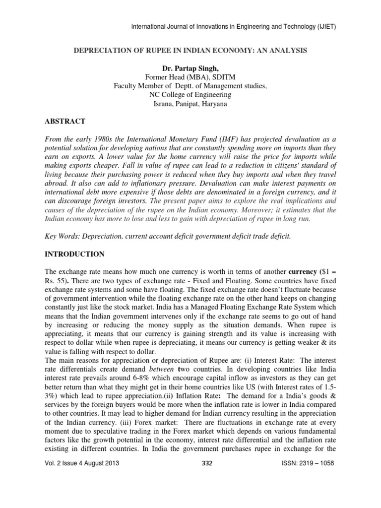 2. K. Johnson .2010. The effects of devaluation of rupee on economy. International