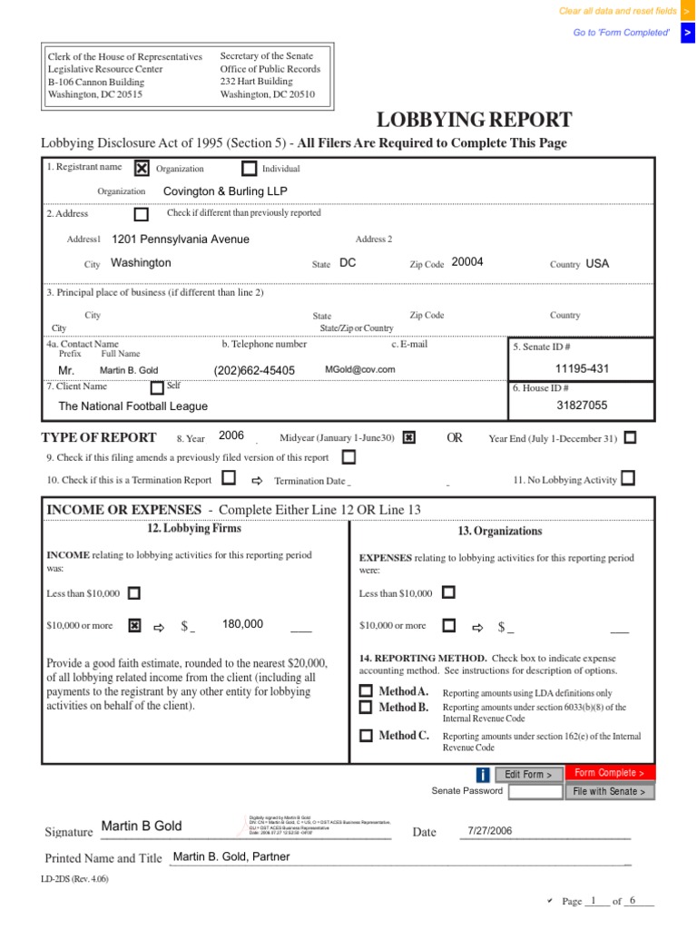 Lobbying Disclosure Act of 1995 (Section 5) - All Filers Are Required to Complete This Page