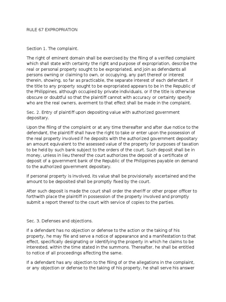 Rule, the court may issue an order of expropriation declaring that the plaintiff has a
