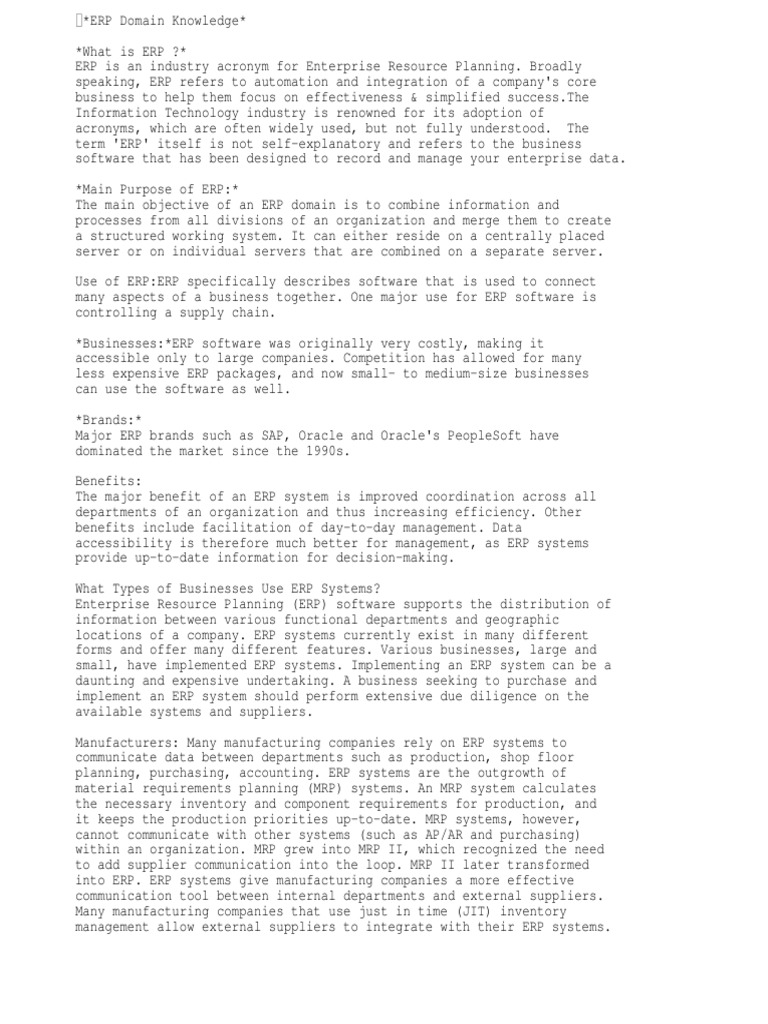 ERP is an industry acronym for Enterprise Resource Planning. Broadly