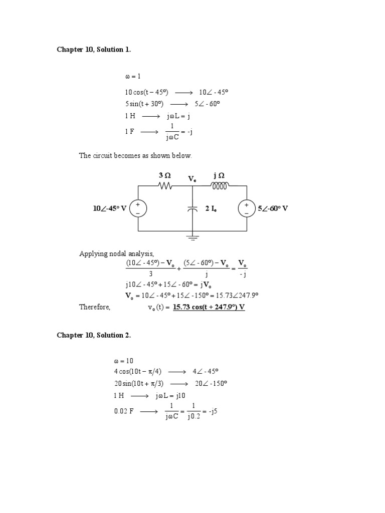 Therefore, i o ( t ) = 2.816 cos(10t + 150.98°) A