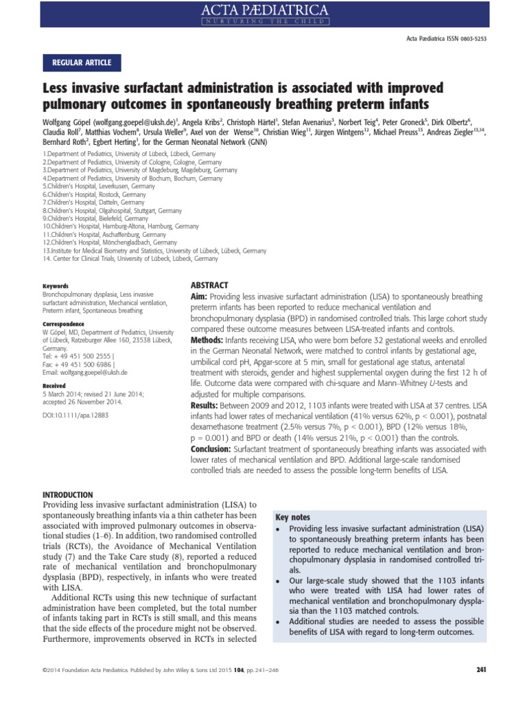 H, et al. Early surfactant in spontaneously breathing with