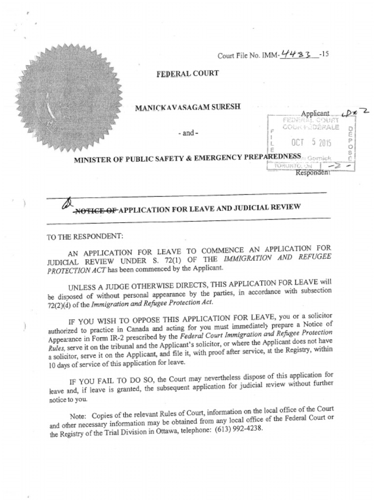 in which Mr. Suresh was found inadmissible to Canada under ss. 34 and 35 of the