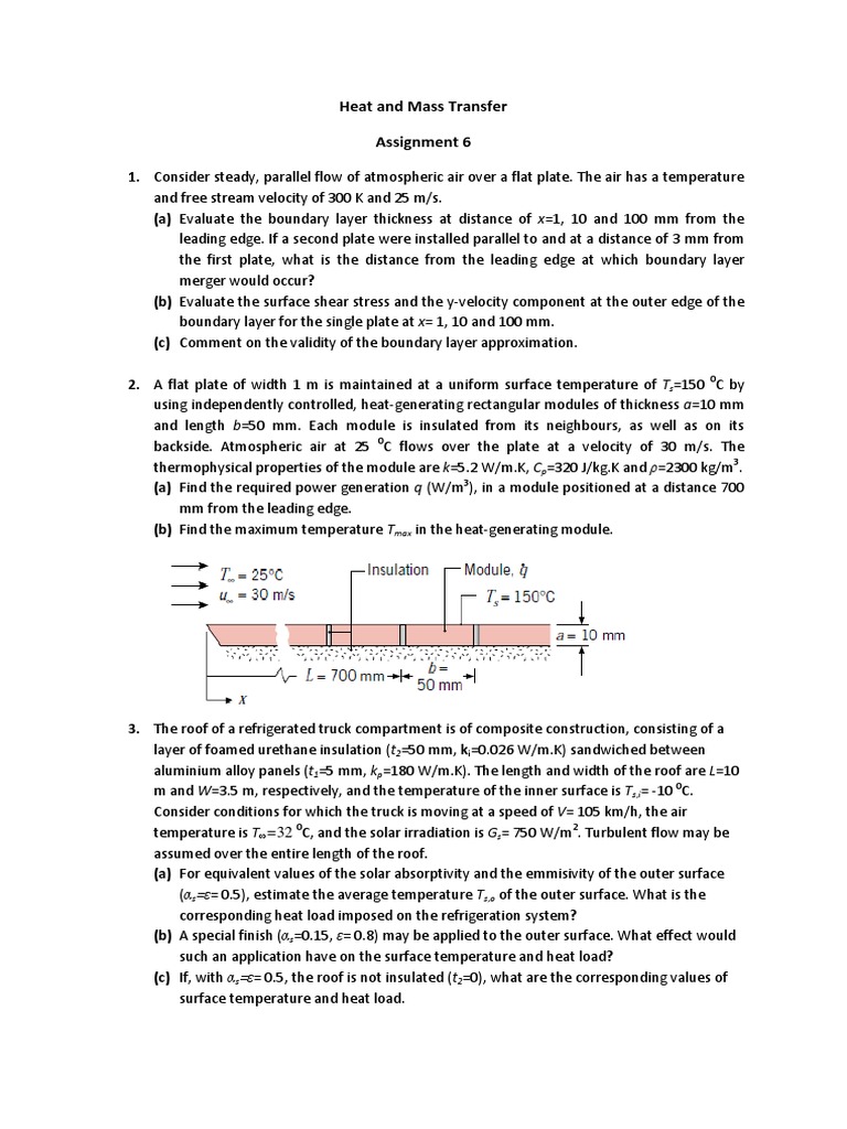 1. Consider steady, parallel flow of atmospheric air over a flat plate. The air has a temperature