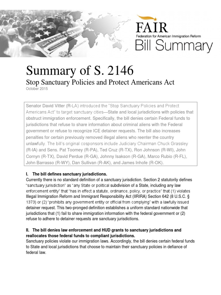 LA) introduced the “Stop Sanctuary Policies and Protect Americans Act” to target sanctuary cities—