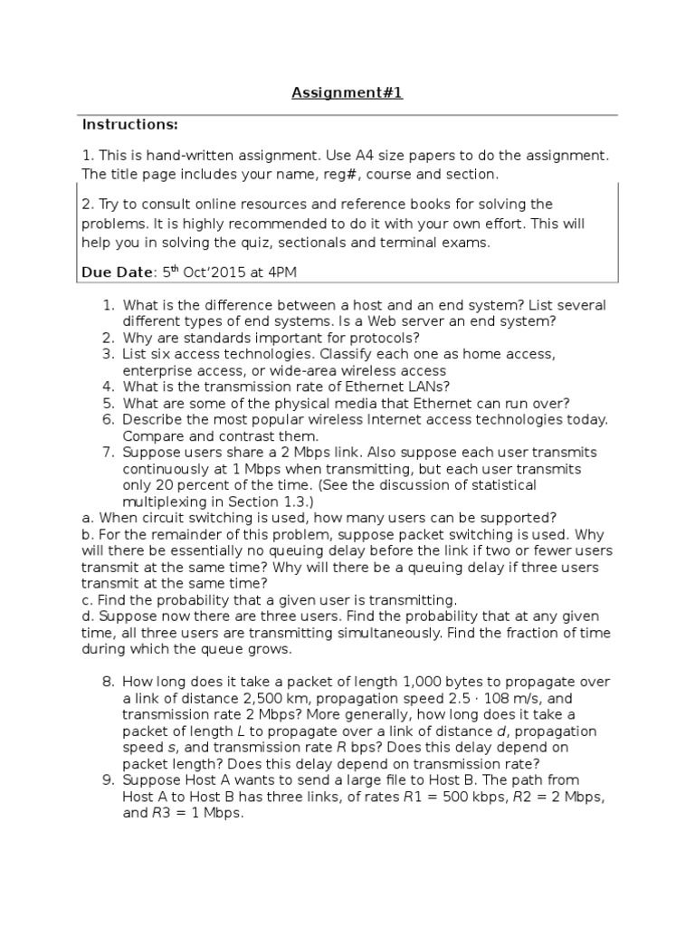 1. This is hand-written assignment. Use A4 size papers to do the assignment.