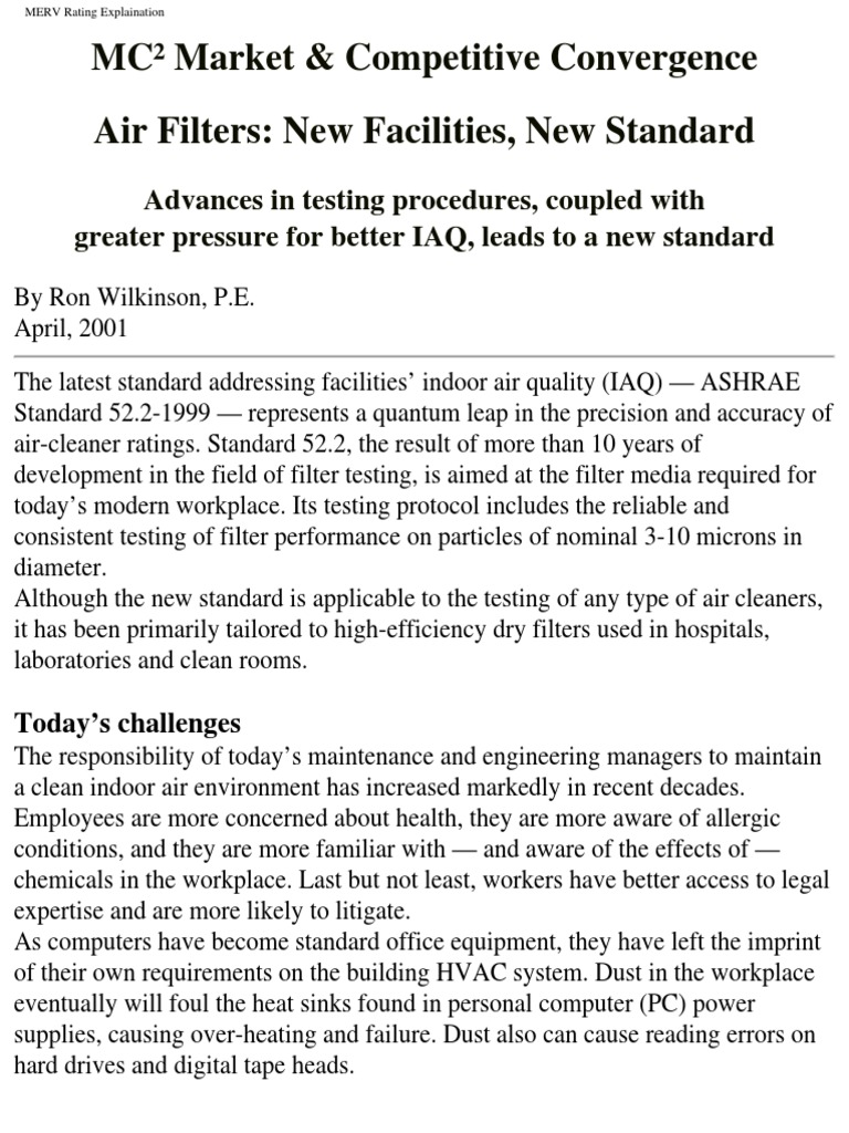 air-cleaner ratings. Standard 52.2, the result of more than 10 years of