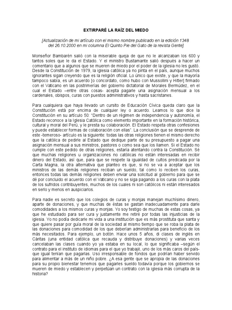 encima se quejan). La iglesia catlica es una de las instituciones que ms dao ha hecho