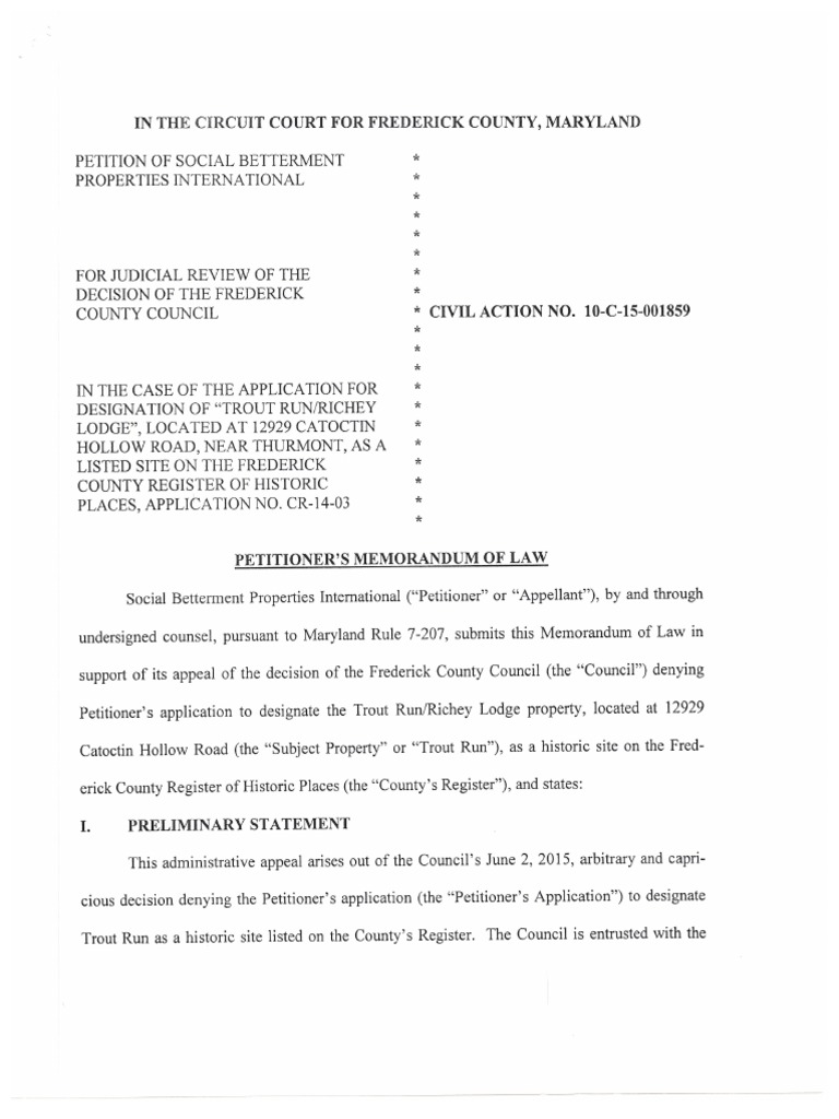 Save Trout Run: Petition for Judicial Review Part 1 For Later