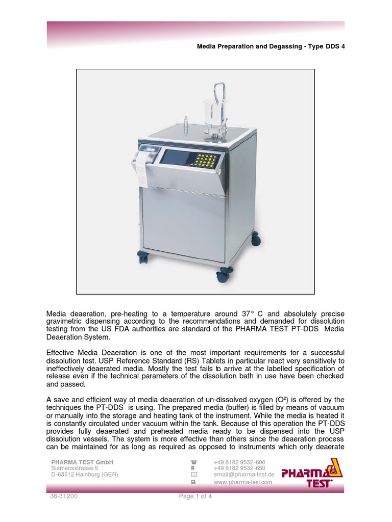 testing from the US FDA authorities are standard of the PHARMA TEST PT-DDS Media