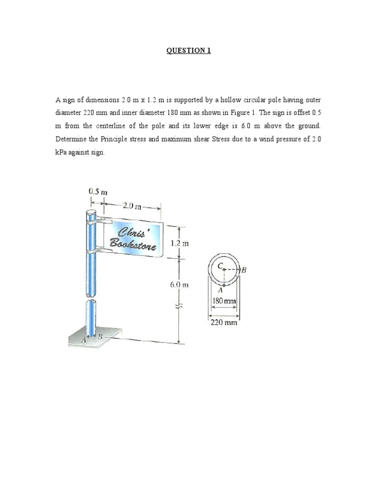 A sign of dimensions 2.0 m x 1.2 m is supported by a hollow circular pole having outer