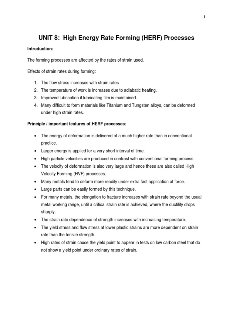 UNIT 8: High Energy Rate Forming (HERF) Processes