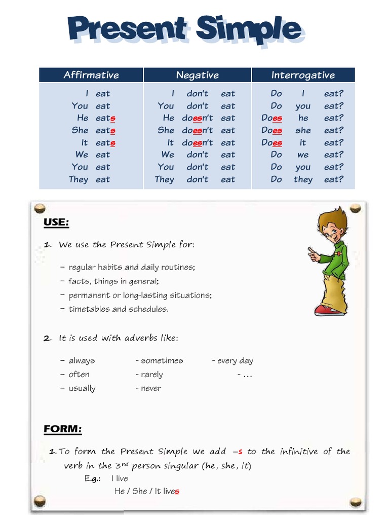1. To form the Present Simple we add s to the infinitive of the