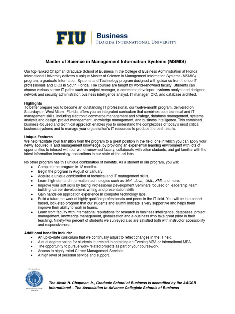 International University delivers a unique Master of Science in Management Information Systems (MSMIS)