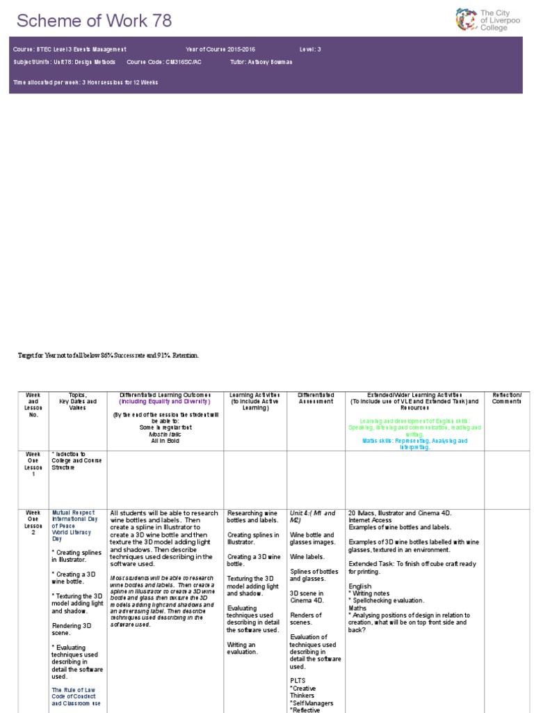 Target for Year not to fall below 86% Success rate and 91%. Retention.