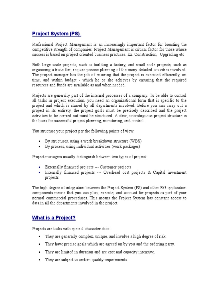 activities to be carried out must be structured. A clear, unambiguous project structure is