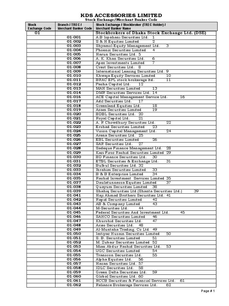 Stockbrokers of Dhaka Stock Exchange Ltd. (DSE)