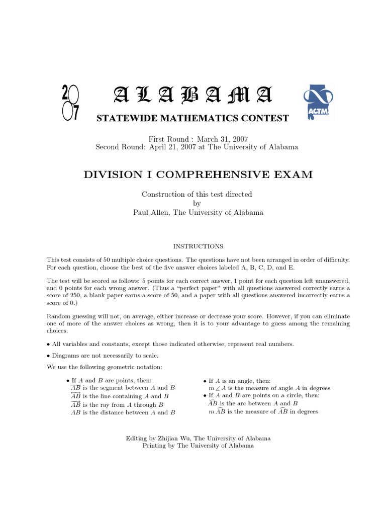 problems. The University of Alabama oers undergraduate and graduates degrees in Mathematics. Please