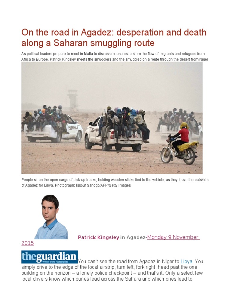 desert to Agadez is just as expensive as the Mediterranean voyage, and the risks are
