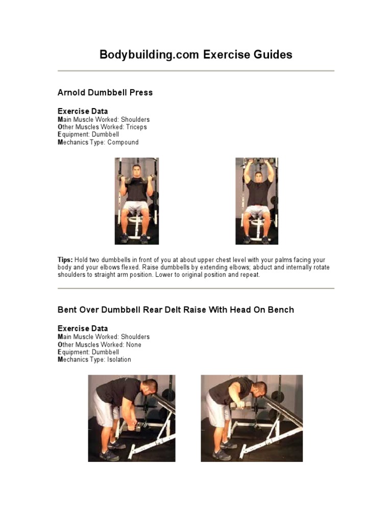 dumbbells so that your shoulders, rather than your biceps, do the work. Make sure you lift the