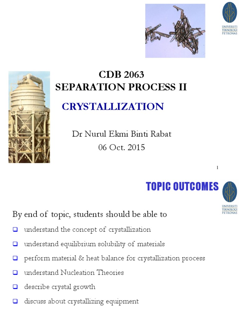 OBJECTIVE OF CRYSTALLIZATION