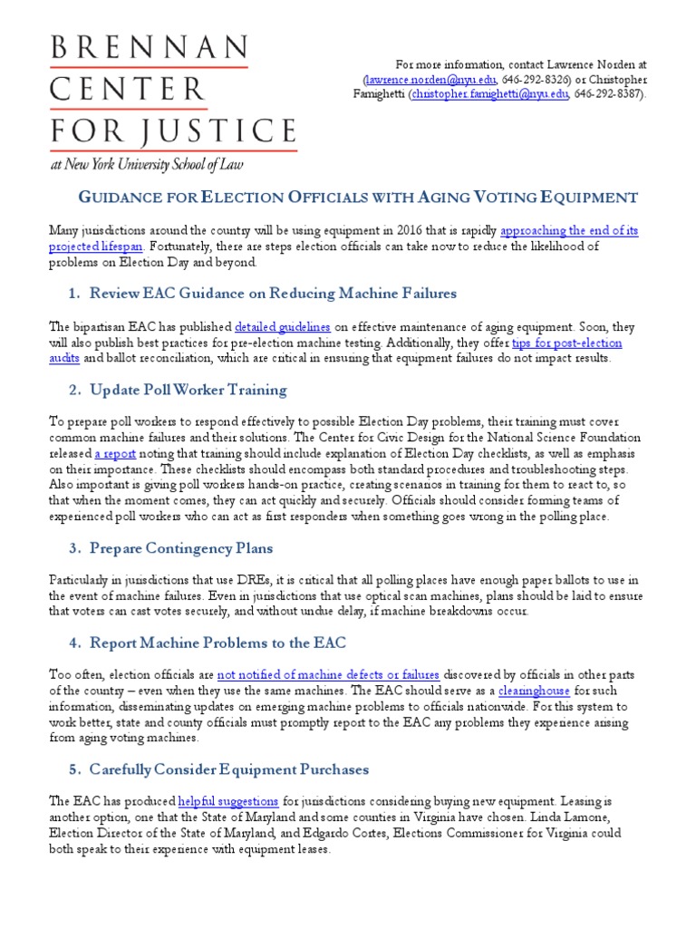 GUIDANCE FOR ELECTION OFFICIALS WITH AGING VOTING EQUIPMENT