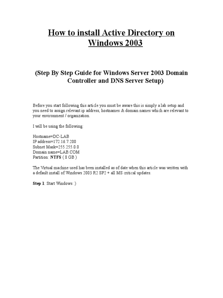 (Step By Step Guide for Windows Server 2003 Domain