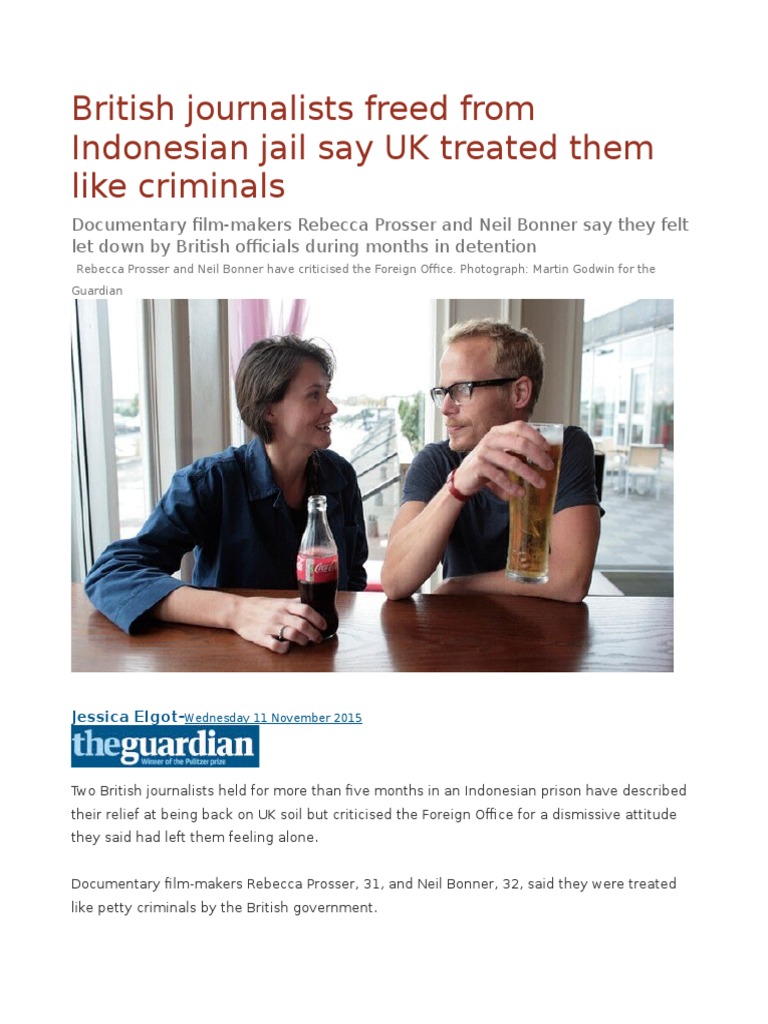 Two British journalists held for more than five months in an Indonesian prison have described