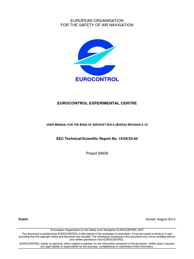 USER MANUAL FOR THE BASE OF Aircraft DATA (BADA) REVISION 3.12