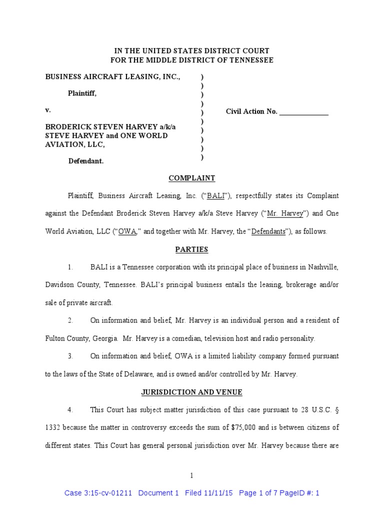 against the Defendant Broderick Steven Harvey a/k/a Steve Harvey (Mr. Harvey) and One