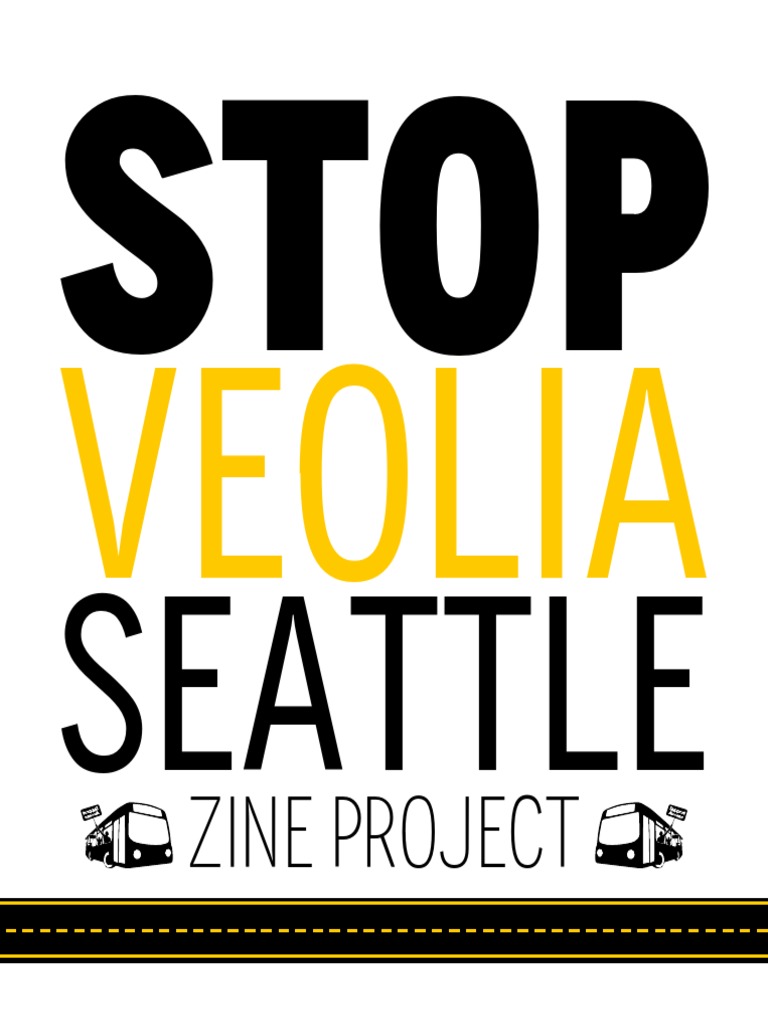 At the heart of this Zine is the defining and redefining of solidarity. We understand Veolia as a microcosm for tracing the intersections of our struggles locally and globally, for the potential and the need for solidarity and for what that community of joint-struggle might look like. Veolia, the largest privatizer of water globally, the largest privatizer of transportation in North America, formerly one of the main profiteers of Israeli apartheid and a company that can be traced back to Napoleon, helps us to trace the roots of today’s neoliberalism in earlier manifestations of Western imperialism and exploitation. This Zine is both an archive of these grapplings as well as a kind of “biography” of Veolia and its crimes globally. Skip around, you can read about Veolia in Asia, Chile, Detroit, Palestine or Seattle first. Or enter thematically via the right to transportation, freedom of movement or disability justice. Check out the table of contents and choose your own adventure. What could happen if our communities were truly in the habit of working together? We look forward to meeting you inside this discussion and, more importantly, this practice. Visit us at stopveoliaseattle.wordpress.com or contact us at stopveoliaseattle@gmail.com November 2015