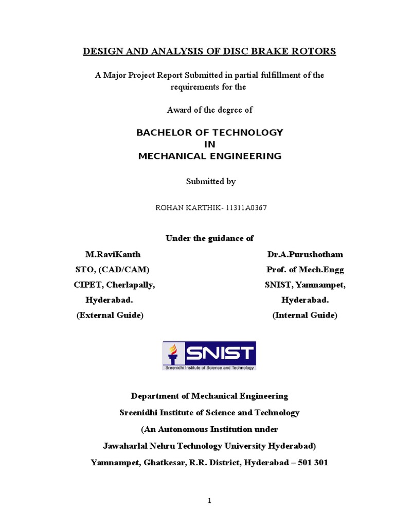 of designing disc brake rotors. With CAD technology the validity of new design tends