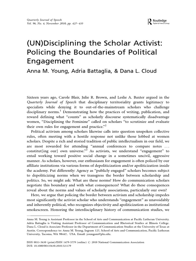Young, Battaglia, & Cloud (2010) (UN) Disciplining The Scholar Activist - Policing The Boundaries of Political Engagement