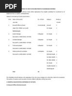 Scheduled Caste Candidates / Backward Caste/ Ex Servicemen Category