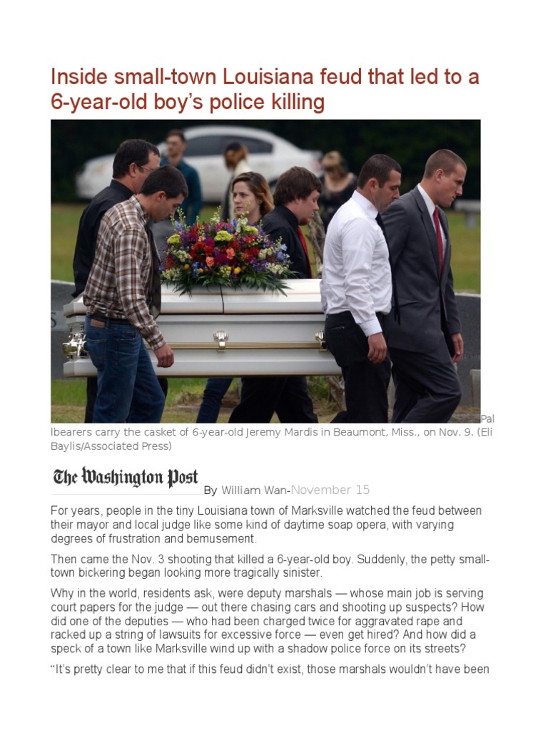 speck of a town like Marksville wind up with a shadow police force on its streets?