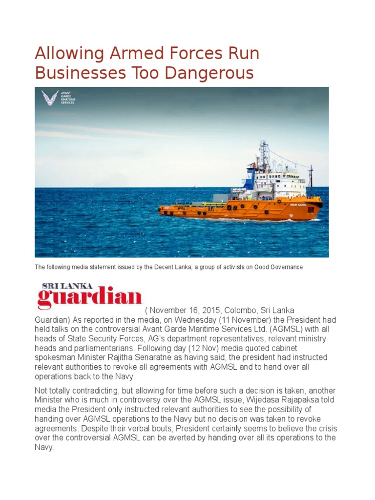 Allowing armed forces to engage in business brings about two serious and dangerous