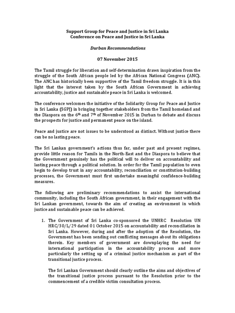 in Sri Lanka (SGPJ) in bringing together stakeholders from the Tamil homeland and