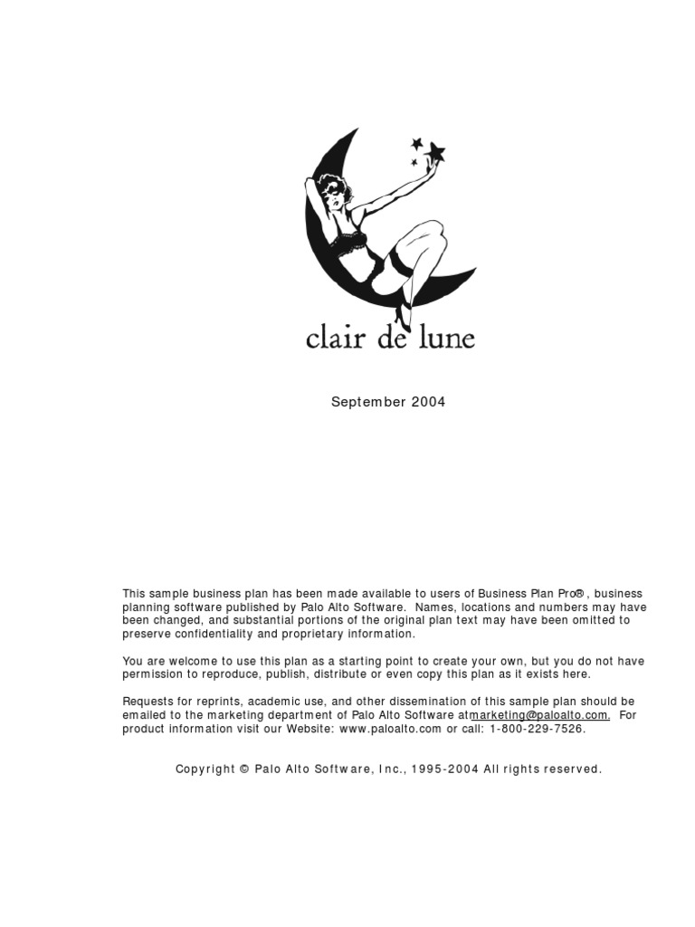 This sample business plan has been made available to users of Business Plan Pro®, business
