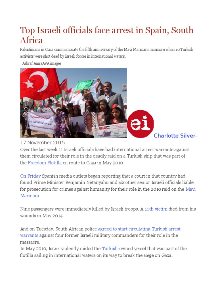 responsible for the attack on the flotilla in 2010. Attempts to sue Israeli officials for