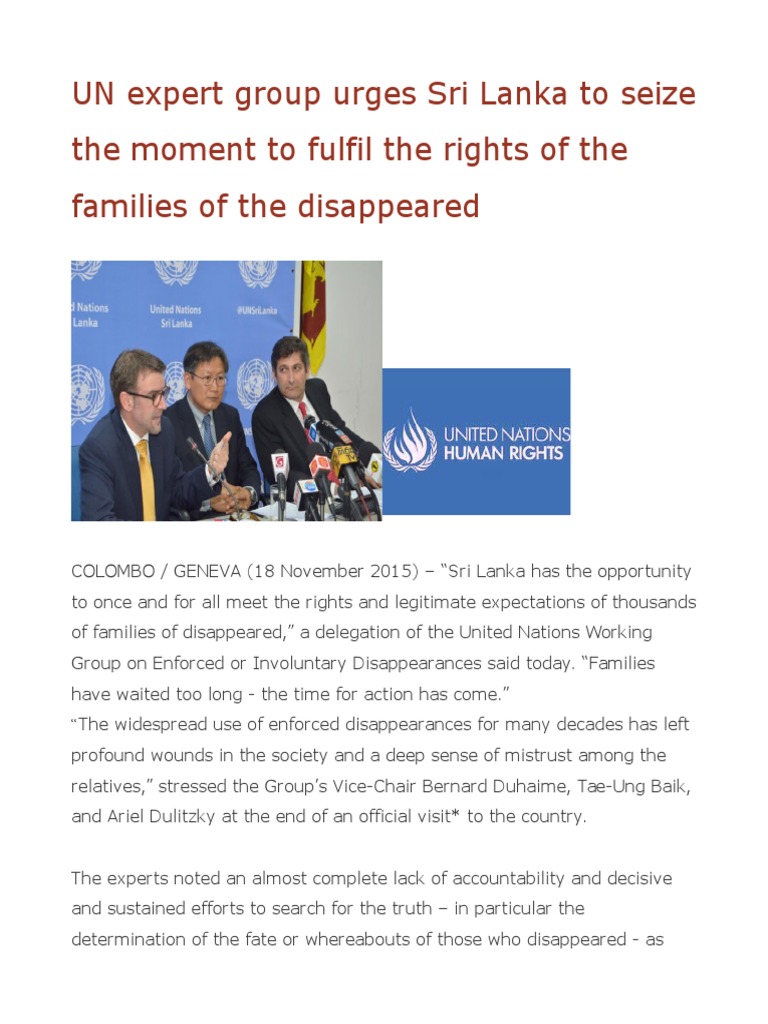COLOMBO / GENEVA (18 November 2015) Sri Lanka has the opportunity