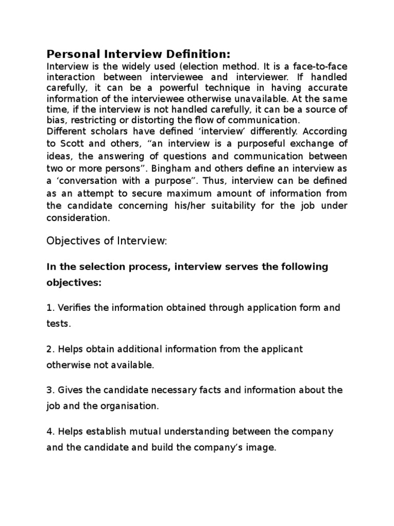 Personal Interview Definition: