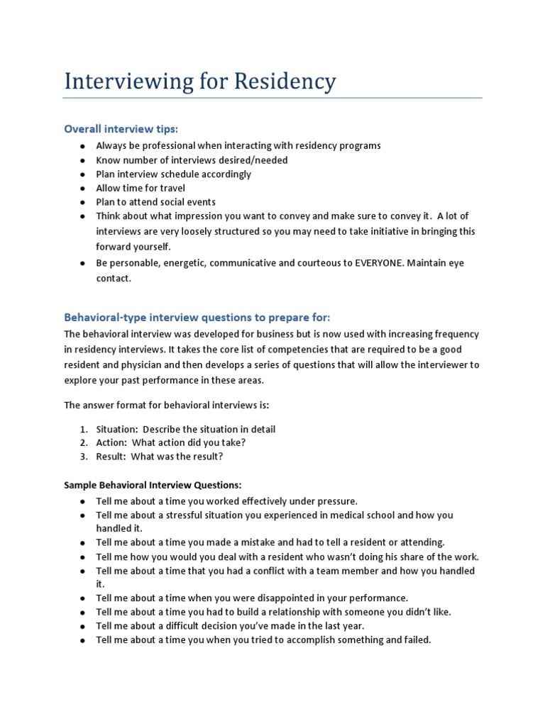 resident and physician and then develops a series of questions that will allow the interviewer to