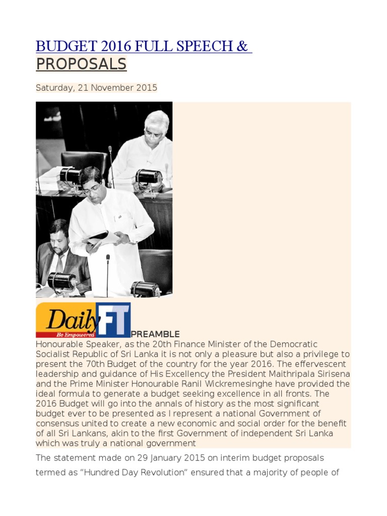 Honourable Speaker, as the 20th Finance Minister of the Democratic