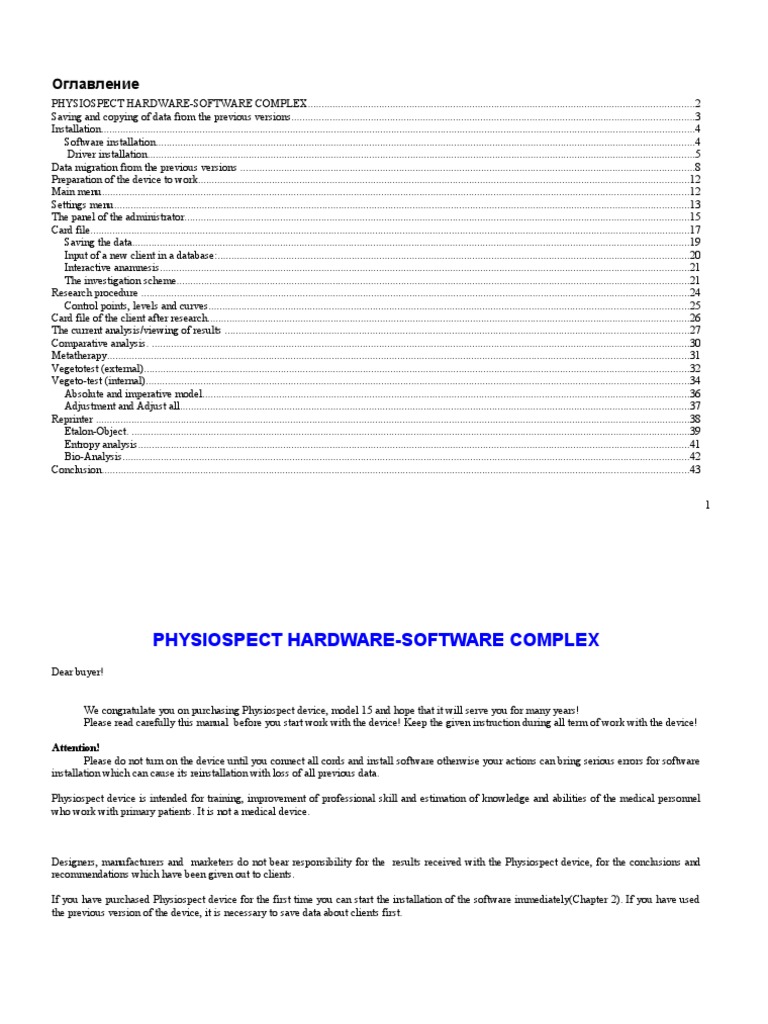 Designers, manufacturers and marketers do not bear responsibility for the results received with the Physiospect device, for the conclusions and