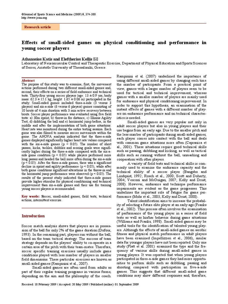 useful tools for the identification of talented young players. Although the effects of small-sided games on aerobic