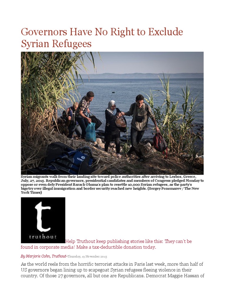 refuse to admit those fleeing Syria. Many proclaimed they would deny entry to the