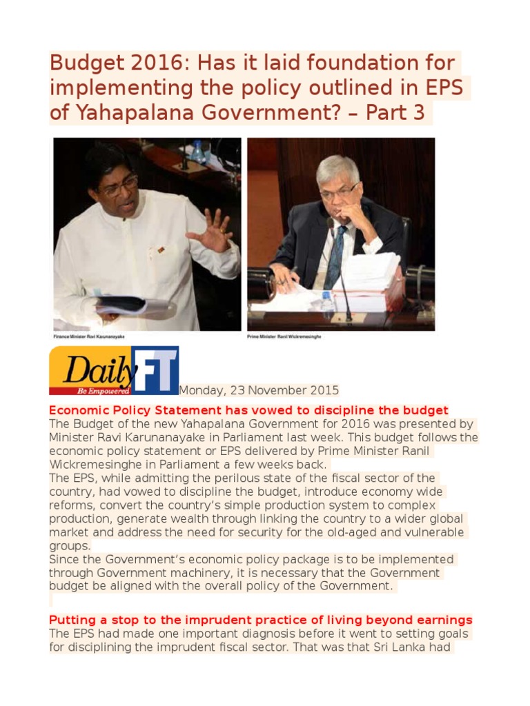 The Budget 2016 is aligned to EPS only in spirit but not in action. The