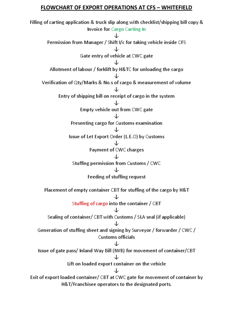 FLOWCHART OF EXPORT OPERATIONS AT CFS WHITEFIELD