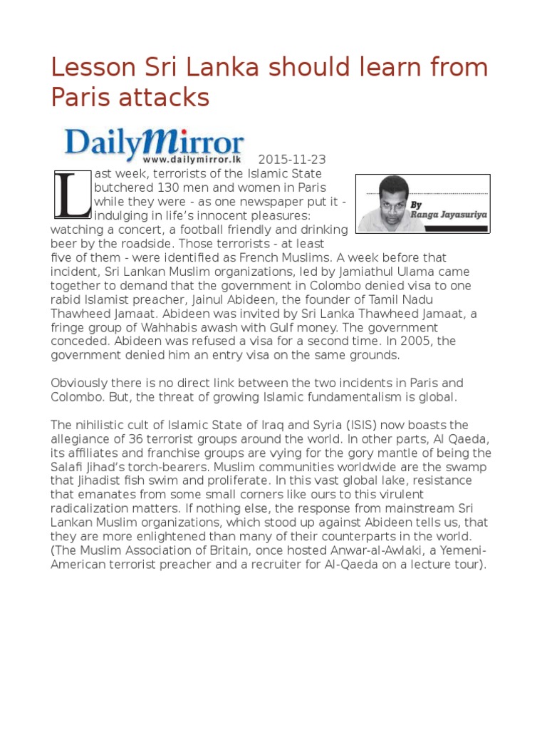 Colombo. But, the threat of growing Islamic fundamentalism is global.